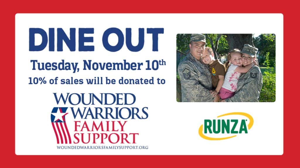 Runza Dine Out event donates 10% to Combat-Wounded Veteran Families